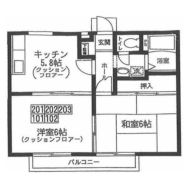 2K(洋室6畳/洋室6畳/K5.8畳) |